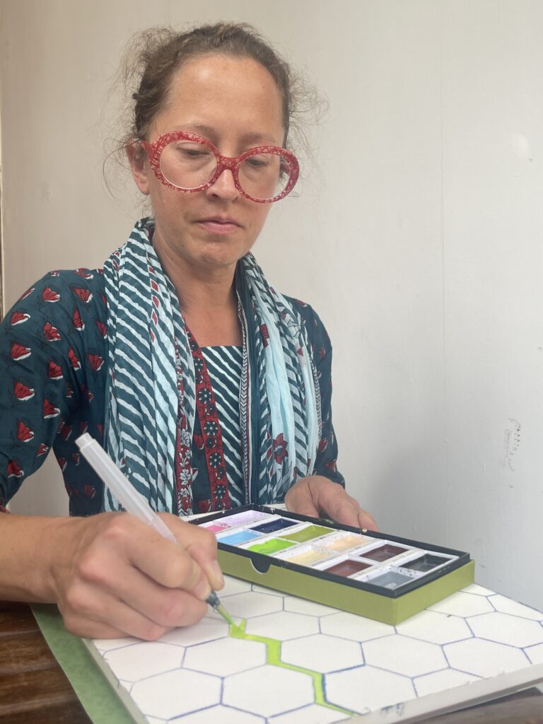 She has a passion for traveling and exploring new places. Her artworks are either created during her travels or created at home inspired by them. In the last years she traveled through Vietnam, Indonesia, Mexico, Costa Rica, Egypt, Japan, China and Morocco. In Ubud, Bali she stayed for a longer period in which she painted and designed. In Carrara, Italy, she worked two month and sculpted in marble.
