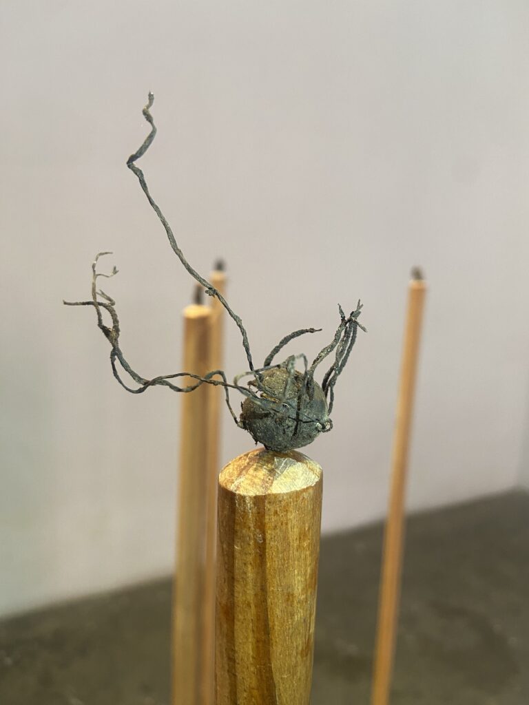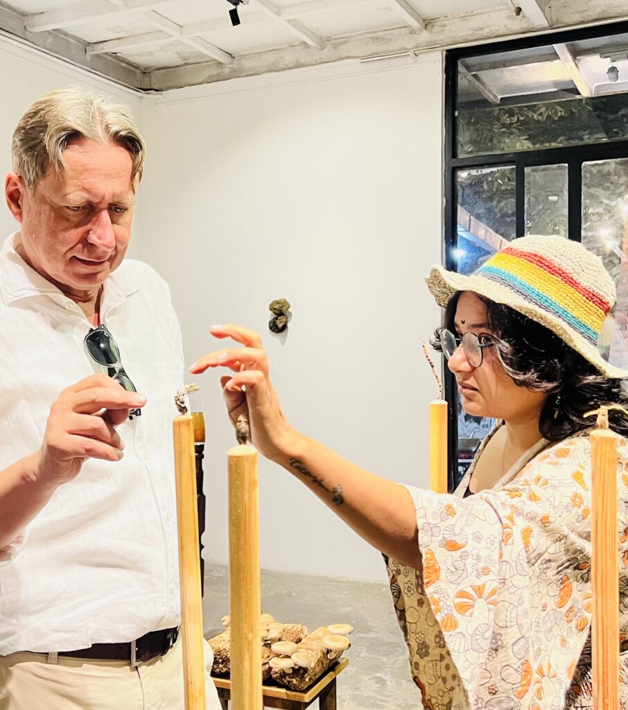 In collaboration with Rukshana Thapa, an ambitious mushroom researcher from Nepal, Anita Fuchs explores the fascinating world of Cordyceps mushrooms, showcased as mini sculptures. As part of the installation, mushrooms are grown within the gallery space, and Kombucha, fermented tea made from Reishi, is also featured as a part of her installation art.