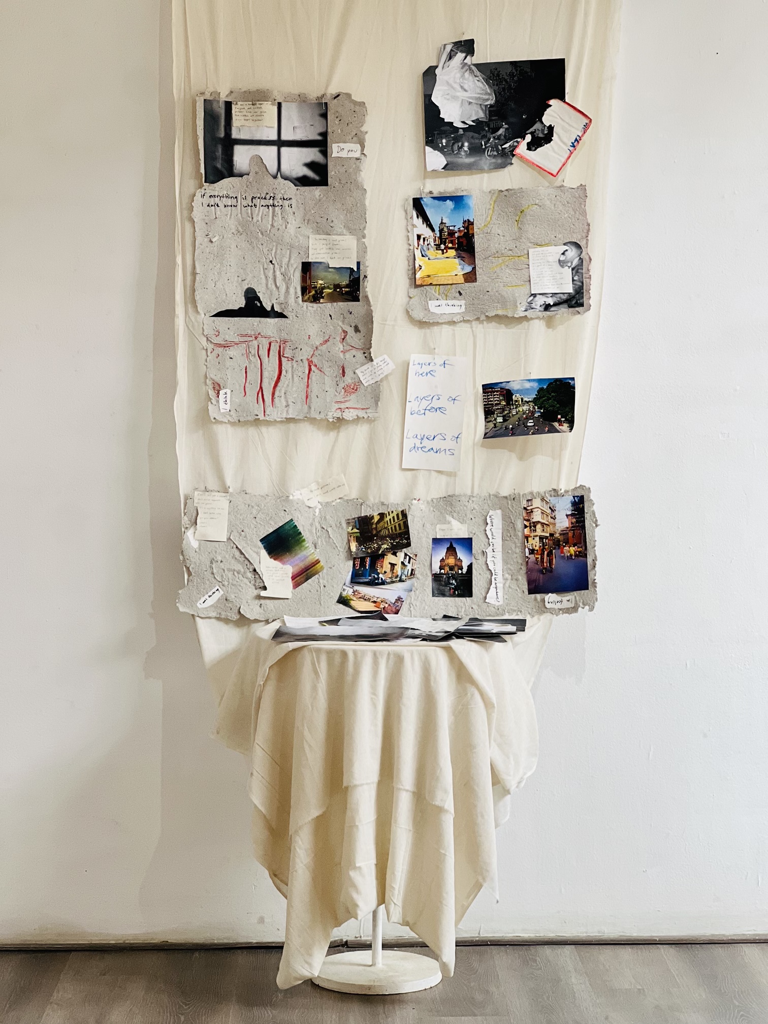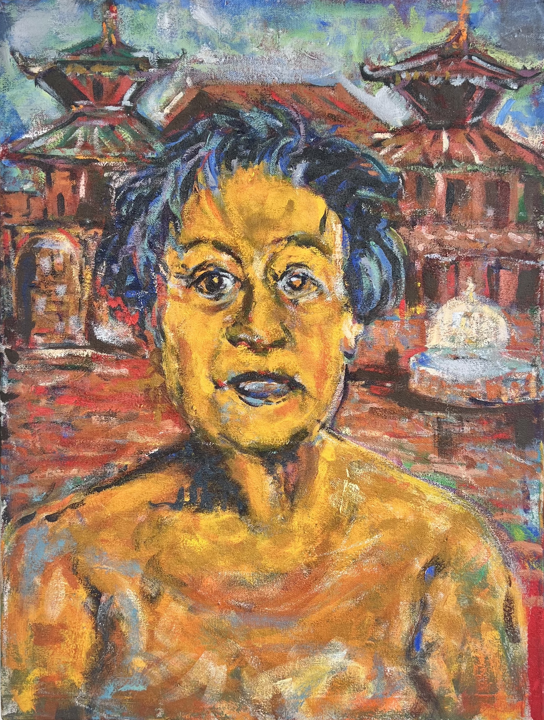 “Where is Nepal”, reverberates throughout my time here. A guest of just one month cannot respond any other way than, “everywhere”. Simple, unpretentious as this question sounds it signals place, time past, present and future history. These works arise from the sensations of being here in Nepal.