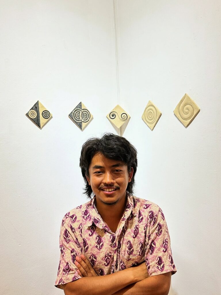 Om Prakash Shrees is a visual artist and a BFA undergraduate from Kathmandu University. Practicing and exploring different art mediums like painting, printmaking, sculpture and site based installation to communicate ideas and emotion for self-expression. His art practice is rooted in deep curiosity about human existence, often exploring themes of philosophy, spirituality and self-discovery. His art practice is a blend of traditional and contemporary influences, aiming to spark introspection and a deeper understanding of existence.